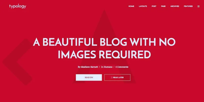 Ofrece varias configuraciones de encabezados, estilos de artículos, tamaños de fuente y layouts que aportan una sensación premium. Typology es ideal si buscas un sitio web con identidad visual clara y profesional, enfocado en transmitir la esencia de tu voz como escritor.